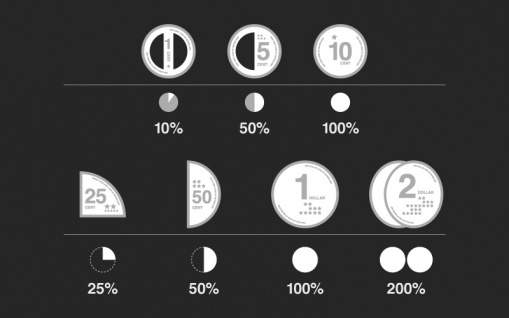 Whenever I travel to foreign countries, I not only try to learn their language and customs, but I also try to understand how their coinage works. Mac Funamizu has developed a solution for that. He has combined the art of the infographic with the practical use of coinage. All a consumer needs to know is how to read a pie chart. Another advantage of the coins is that it would be easy for visually handicapped persons to recognize the correct change just by the shape and feel of the coin, especially if Braille were added.