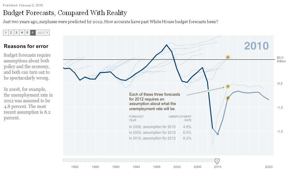 via New York Times : Budget Forecasts, Compared With Reality