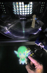 Researchers at Keio University has recently developed a new hardware device for displaying, and interacting with, 3-D images. I am curious to see how it works in real life. Is it simply a mirror that spins around very fast on which images are displayed, or is this some new technology altogether?