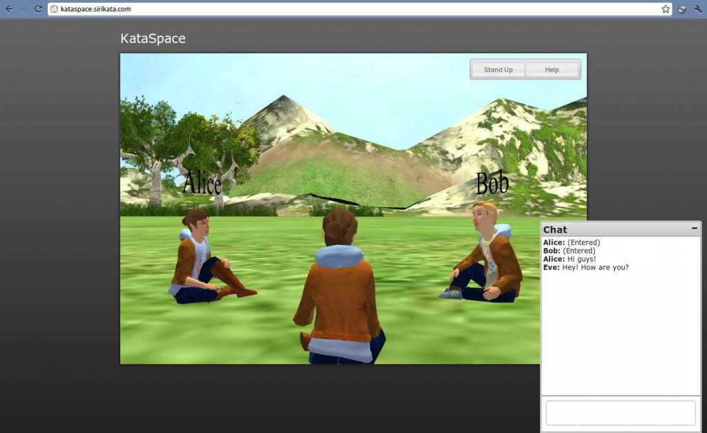 We are very excited to announce the release of KataSpace; a WebGL/HTML5 frontend to Sirikata based a multiuser 3D environment. This application allows you to build things like a MMO or Second Life style virtual world and deploy it on any web page where it can can be visited by anyone running a modern web browser (including the one on your smartphone or iPad).