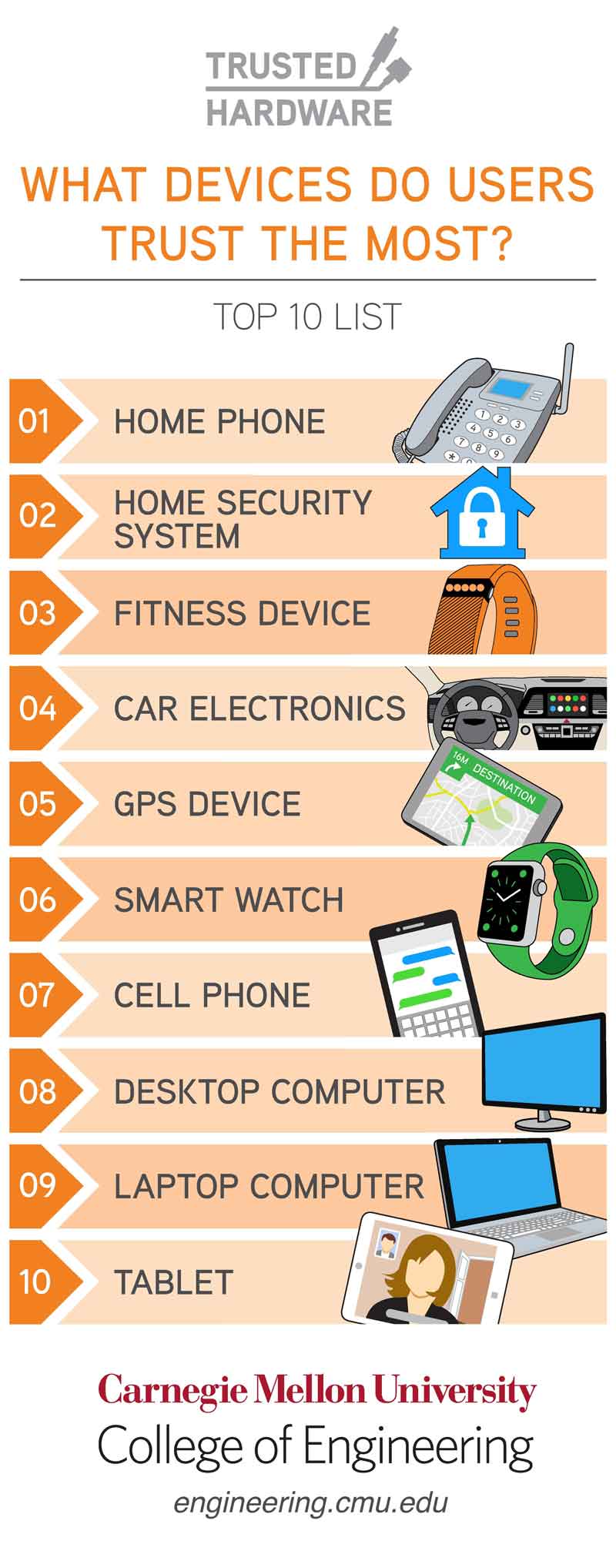 A new survey conducted by the College of Engineering at Carnegie Mellon University asked 2,000 U.S. consumers to rank the 10 electronic devices that users trust most with their personal information: